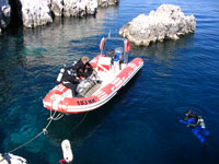 18 Meter Segelschiff mit kleinen Höhlen im Flachbereich |