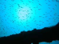 70 Meter Holz-Frachter von vielen Fischen bewohnt, gesunken 1968 |